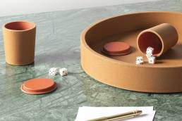 Per chi apprezza i rituali conviviali, il set di dadi Poltrona Frau è una piccola scultura da sfoggiare. Custodito in un raffinato contenitore in pelle, il gioco acquista una dimensione sofisticata e senza tempo. Perfetto per chi ama intrattenere con stile o desidera un dettaglio prezioso da tenere sul tavolino del living.
