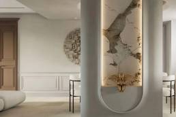 La luce gioca un ruolo centrale: integrata nelle nicchie o studiata per enfatizzarne i volumi, amplifica la tridimensionalità e sottolinea le geometrie progettate.